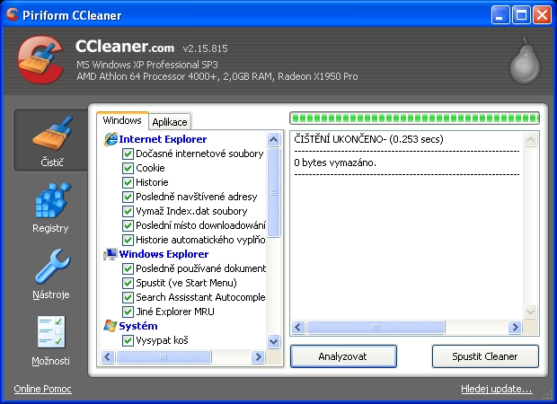 Program anglické společnosti Piriform, díky němuž můžete váš počítač snadno a rychle pročistit. Odstraňování nedůležitých systémových souborů, které zabírají zbytečně mnoho místa, oprava registrů a pročištění multimediálních a kancelářských balíků.