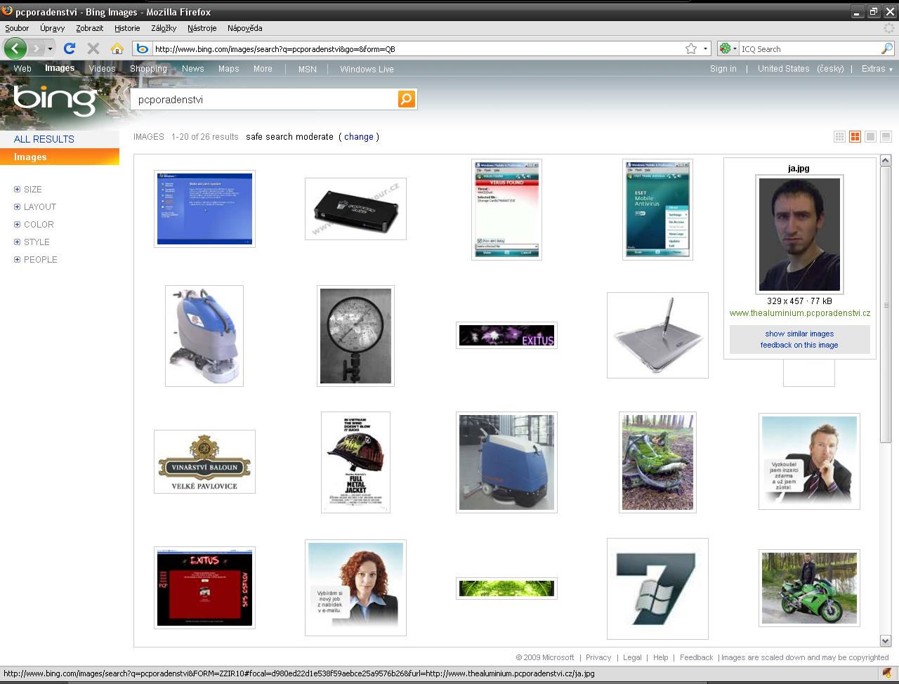 Když jsem se rozkoukal v uživatelském prostředí, musel jsem si přiznat, že se Bing příjemně hodí k Vistě a příjemně spolu ladí (vím, že bych se měl rozepisovat spíše o funkčnosti vyhledávače, ale tohle jsem zmínit musel, potěšilo mě to.) Po pár okamžicích proklikávání jsem se pustil do samotného vyhledávání, kde ovšem přišla studená sprcha.