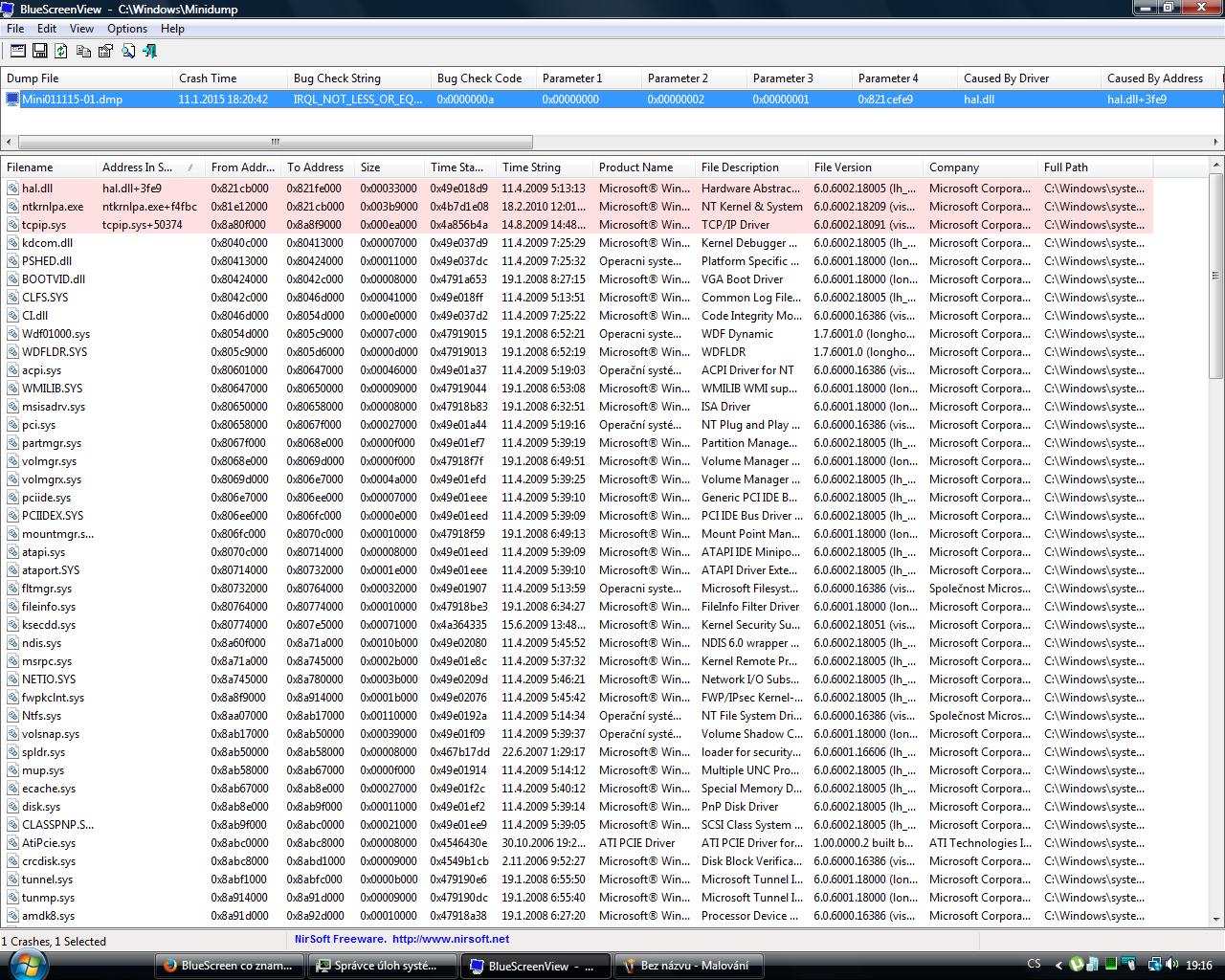 Název události problému: BlueScreen