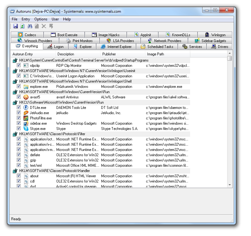 Naším posledním programem je program zvaný Autoruns. Jednoduše řečeno – s tímto programem můžete, co se startu systému týče, nastavit doslova cokoliv.